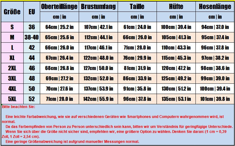 Größen: S, M, L, 2XL, 3XL, 4XL, 5XL