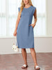 💥Lockeres Midikleid mit Rundhalsausschnitt und Schlitz und Taschen für Damen